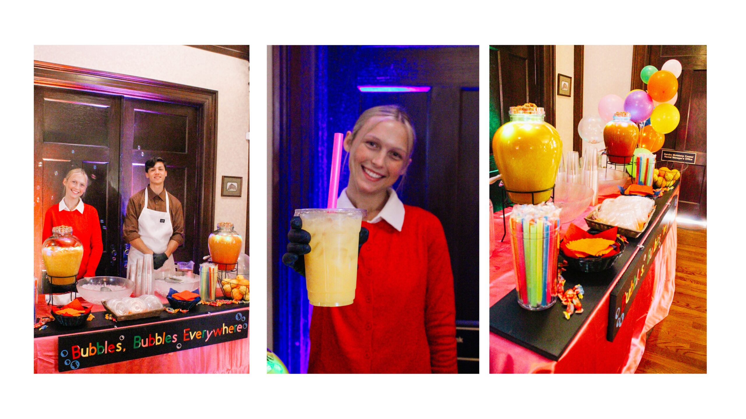 To capture the effervescent spirit of Willy Wonka’s bubble room, we set up the Bubbles, Bubbles Everywhere Station with colorful fizzy mocktails. These drinks added a bubbly, refreshing twist to the evening, delighting guests of all ages.