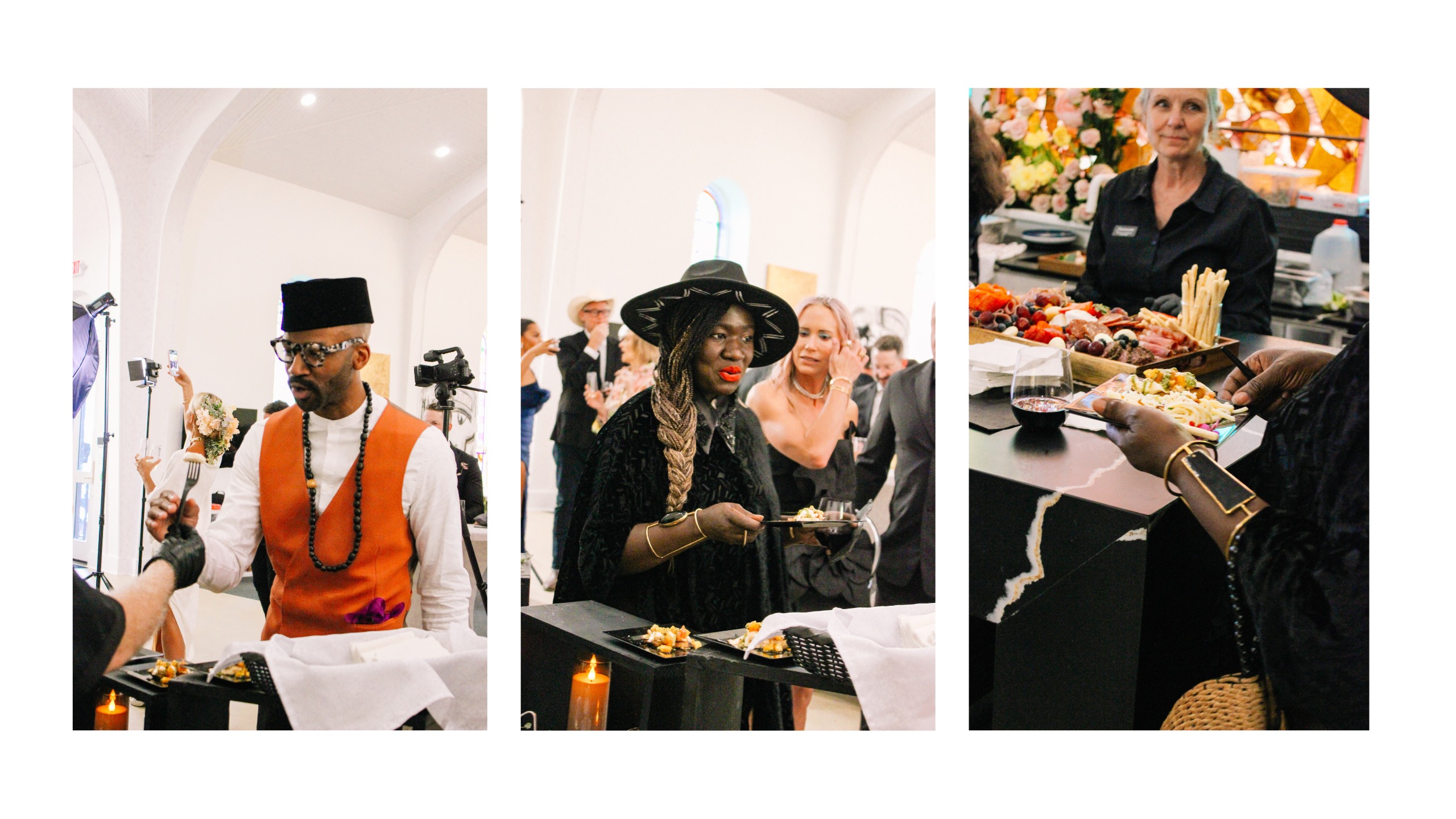 From 6:00 p.m. to 8:00 p.m., we continued to surprise and delight guests with a selection of passed hors d’oeuvres. While we kept the precise menu under wraps to build anticipation, each bite was meticulously crafted to harmonize with the artistic ambiance of the event. Our culinary team focused on creating gourmet bites that were not only delicious but also visually stunning, enhancing the overall sensory experience.