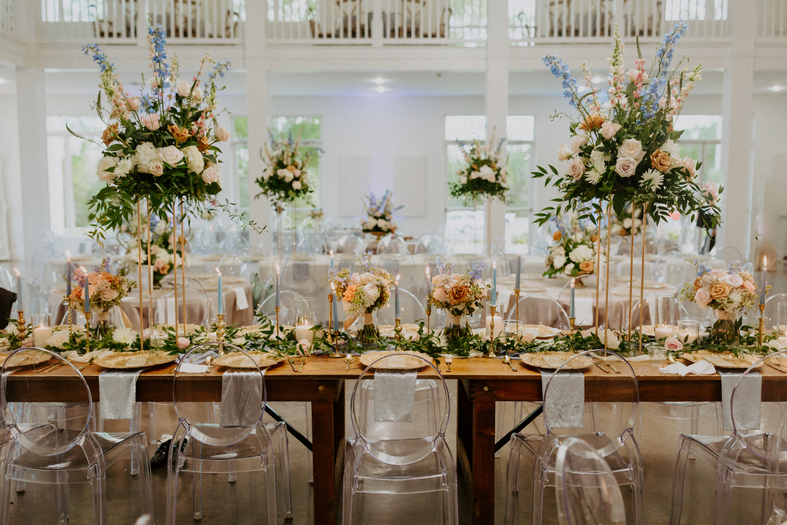 The reception transformed into an unforgettable celebration, with DJ Derrick King of King’s Productions keeping the dance floor packed all night long. The space came alive through Kelly at A Perfect Bloom’s masterful interpretation of Paula’s whimsical spring vision, creating an atmosphere of pure magic.