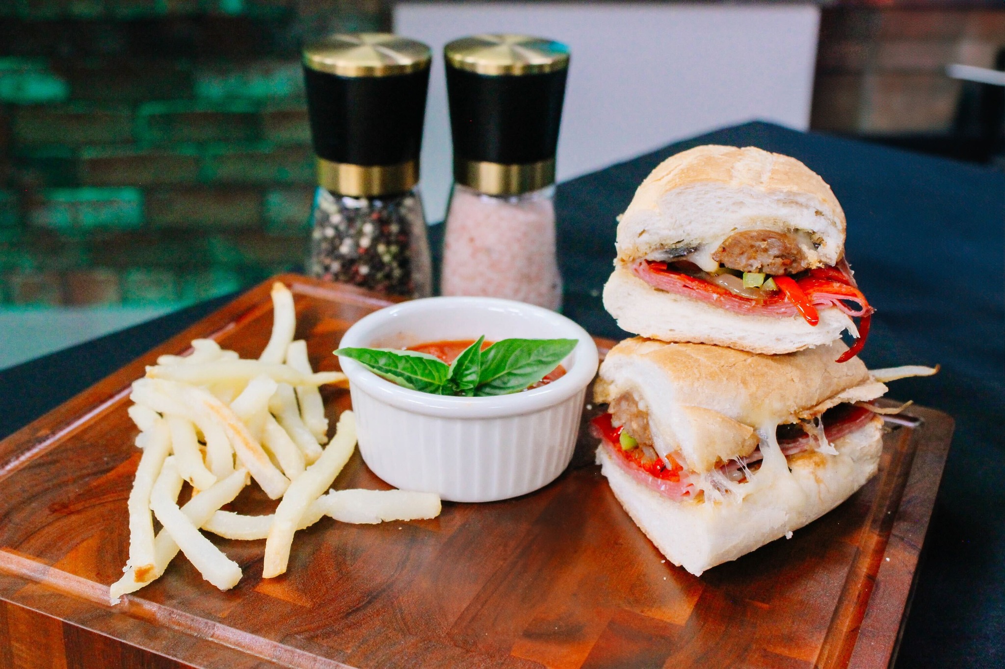 What makes the Italian Hero Sandwich stand out is its perfect balance of flavors and textures. The spiciness of the hot Italian sausage complements the rich, savory taste of pepperoni and Genoa salami. The mozzarella cheese melts beautifully, adding a creamy texture that ties the sandwich together. Sautéed bell peppers and onions introduce a sweet, slightly charred flavor, enhancing the overall profile of the sandwich. The marinara sauce served on the side is the perfect finishing touch, adding a tangy, garlicky note that elevates each bite.