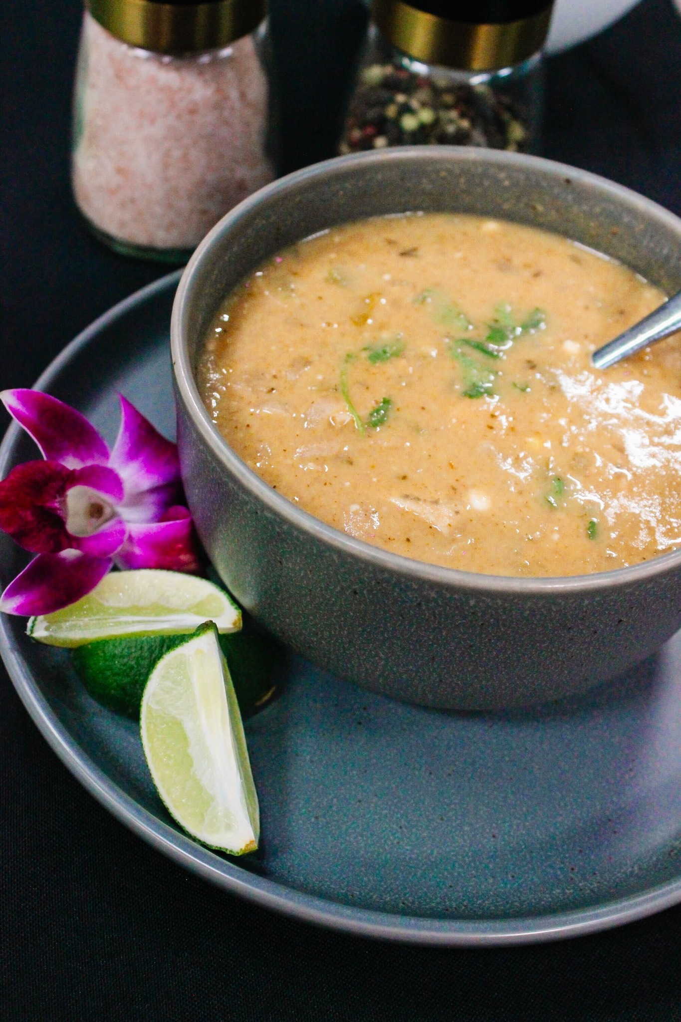 Our Chicken Chili combines traditional Mexican flavors with a creamy twist. The secret lies in the unique combination of pureed cannellini beans and cream cheese, creating a luxuriously smooth texture while keeping the dish lighter than traditional beef chilis. The Mexican oregano and fresh lime juice add authentic southwestern notes, while the green chilies provide a gentle heat that warms without overwhelming.